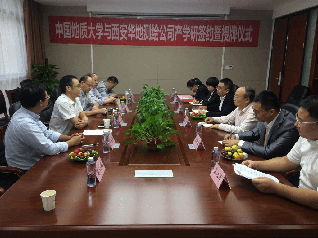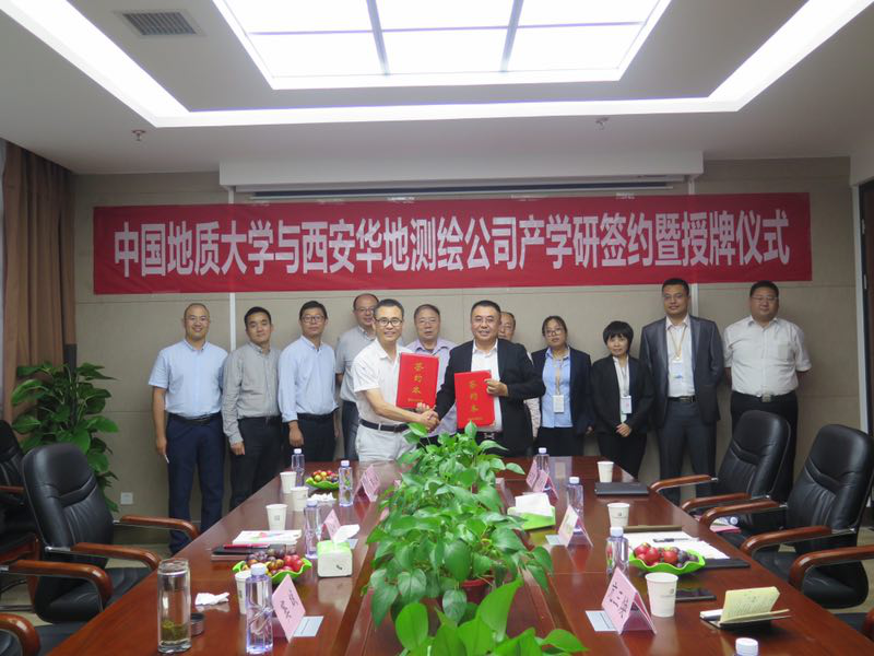 2019年9月15日-9月17日,best365英国体育在线(武汉)best365英国体育在线党委副书记江广长、副经理窦斌、勘察与基础工程系主任卢春华、姚爱国教授、院工会主席蔡记华教授及工程地质与岩土工程系葛云峰副教授一行赴西安,先后走访了陕西西探地质装备有限公司和西安华地测绘科技有限公司,并与陕西西探地质装备有限公司召开了产学研合作基地揭牌仪式,与西安华地测绘科技有限公司签订了产学研合作协议并进行揭牌。