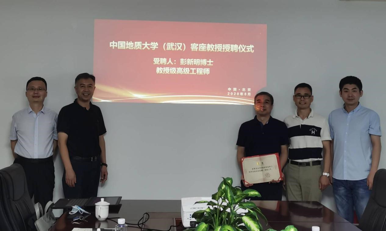 8月12日下午,best365英国体育在线(武汉)聘请彭新明博士为客座教授的仪式在北京市地质勘察技术院217会议室举行。北京市地质勘察技术院行政负责人王立发、院副总工程师兼资源勘查中心主任彭新明及相关人员出席仪式。仪式由best365英国体育在线副经理窦斌教授主持。