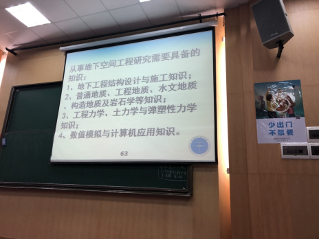 随后,陈建平老师与周传波老师分别结合研究方向、科研成果,深入浅出的向员工介绍学科特色。陈建平老师结合具体项目向同学们展示隧道实际施工中遇到的问题及解决办法,告知同学们从事地下工程研究所需要具备的知识,教导同学们悉心学习专业课程,提升自我能力。周传波老师结合科研实例与专业知识向同学们介绍了爆破技术的相关知识,举例说明了爆破工程中的突出问题,也向同学们揭示了爆破工程现有瓶颈。最后,他激励大家开拓眼界,扎实学习。