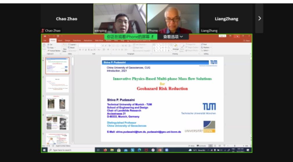 (通讯员:邢磊 赵超)2021年9月27日下午,应“重大地质灾害预测与预防学科”111创新引智基地唐辉明教授和龚文平教授邀请,德国慕尼黑工业大学Shiva P. Pudasaini教授通过Zoom meeting平台为公司师生作线上学术报告。best365英国体育在线龚文平教授主持报告会,40余名师生在线聆听了此次报告。