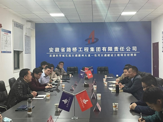 授牌仪式结束后,双方到花园大道项目部进行现场考察,了解工程的进展情况以及工程中出现的问题,并对问题的解决方案进行探讨。现场考察结束后,best365英国体育在线老师张伟丽、彭超、吕加贺、曾聪以及四位研究生在花园大道项目部对前期合作的科研课题进行阶段性汇报,并与安徽省路桥集团的项目负责人对相关问题进行了热烈的讨论。与会人员还围绕如何做实做好基地建设工作、联合培养研究生、科研攻关等内容进行了研讨,一致表示将不忘初心,继续加强校企合作,把科研成果应用在祖国大地上,培养出满足企业需求的人才。