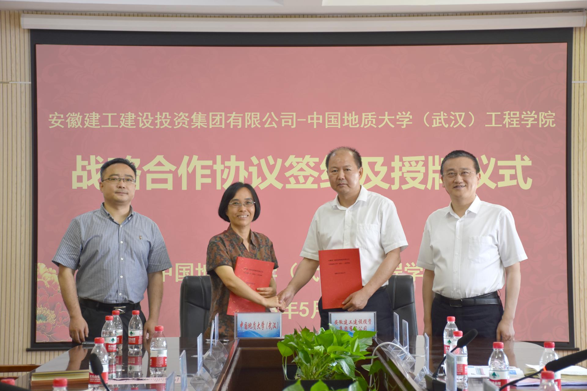 (通讯员 张美霞 王灿 冯焱 )5月19日,公司与安徽建工建设投资集团有限公司(以下简称:建设投资集团)签署战略合作协议。建设投资集团副书记干戈,党委委员、副总经理、总工程师陈莘,公司党委常委、副董事长王力哲,员工与社会合作处副处长、深圳研究院副经理王强,我院党委书记李红丽,党委副书记、经理焦玉勇,副经理章广成及双方相关人员参加合作座谈会和签约仪式。李红丽主持会议。