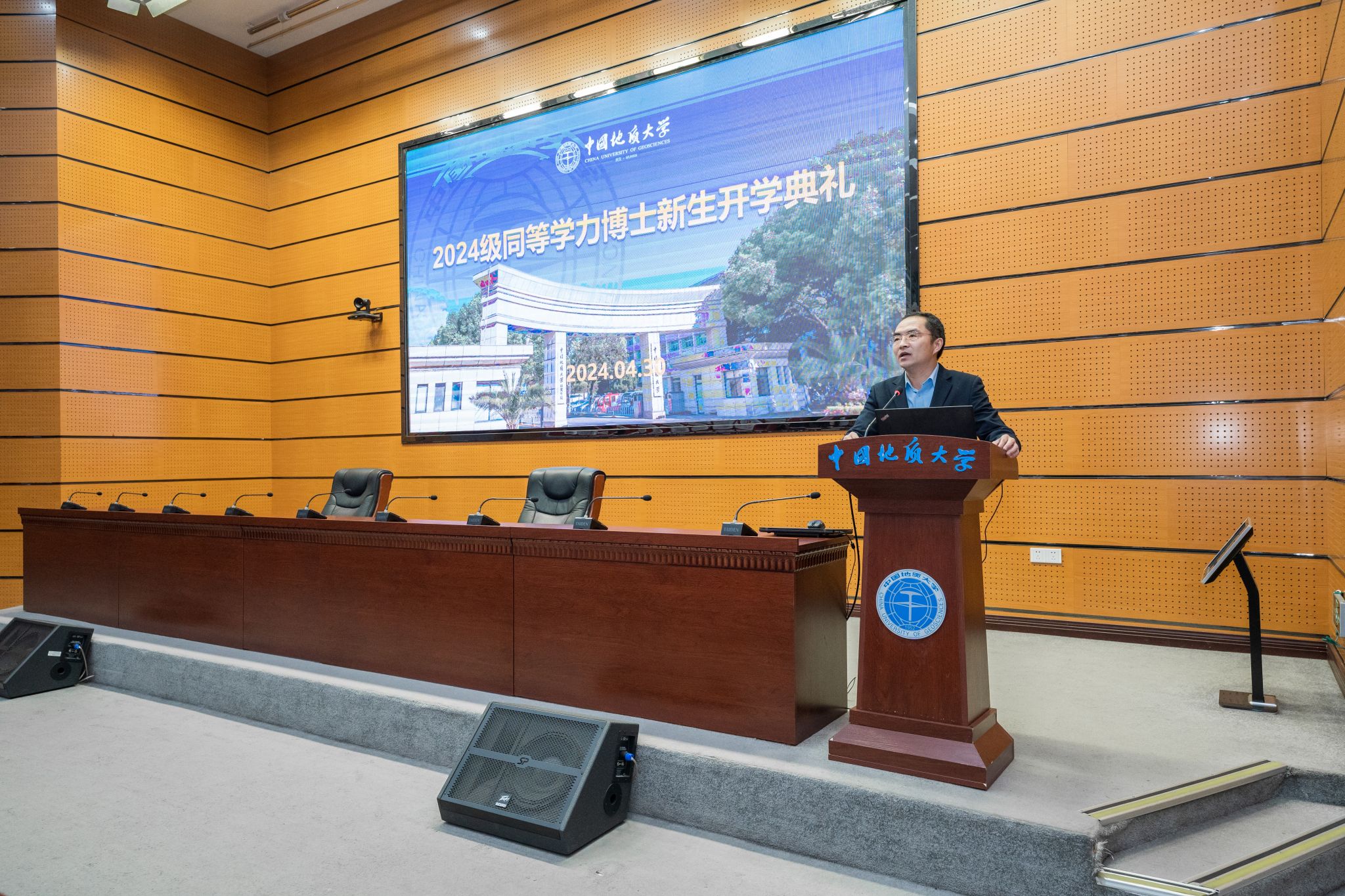 副董事长王华向今年新入学的87名同等学力申请博士学位研究生表示欢迎并对公司的基本情况做了介绍。他说,办学70多年来,地大始终坚守着“艰苦朴素、求真务实”的校训,始终保有扎根中国、胸怀天下、勇攀高峰、追求卓越的攀登精神。如今,地大多学科协调发展的学科生态体系得到了良好的构建,不但能培养领军人才、理论创新型人才,还可以在实战解决国民经济主战场中起到关键作用。对新生同学他也提出了两点建议:一是珍惜机会,努力学习,接续奋斗;二是符合时代的要求,跟上时代的步伐。他希望同学们不忘初心,牢记使命,努力提升服务国家重大战略、国家资源、能源生态环境、区域经济社会发展、可持续发展等的战略能力和技术能力,为公司达到地球科学领域世界一流贡献力量,为建设美丽中国宜居地球提供人才和科技支撑贡献智慧和才华。