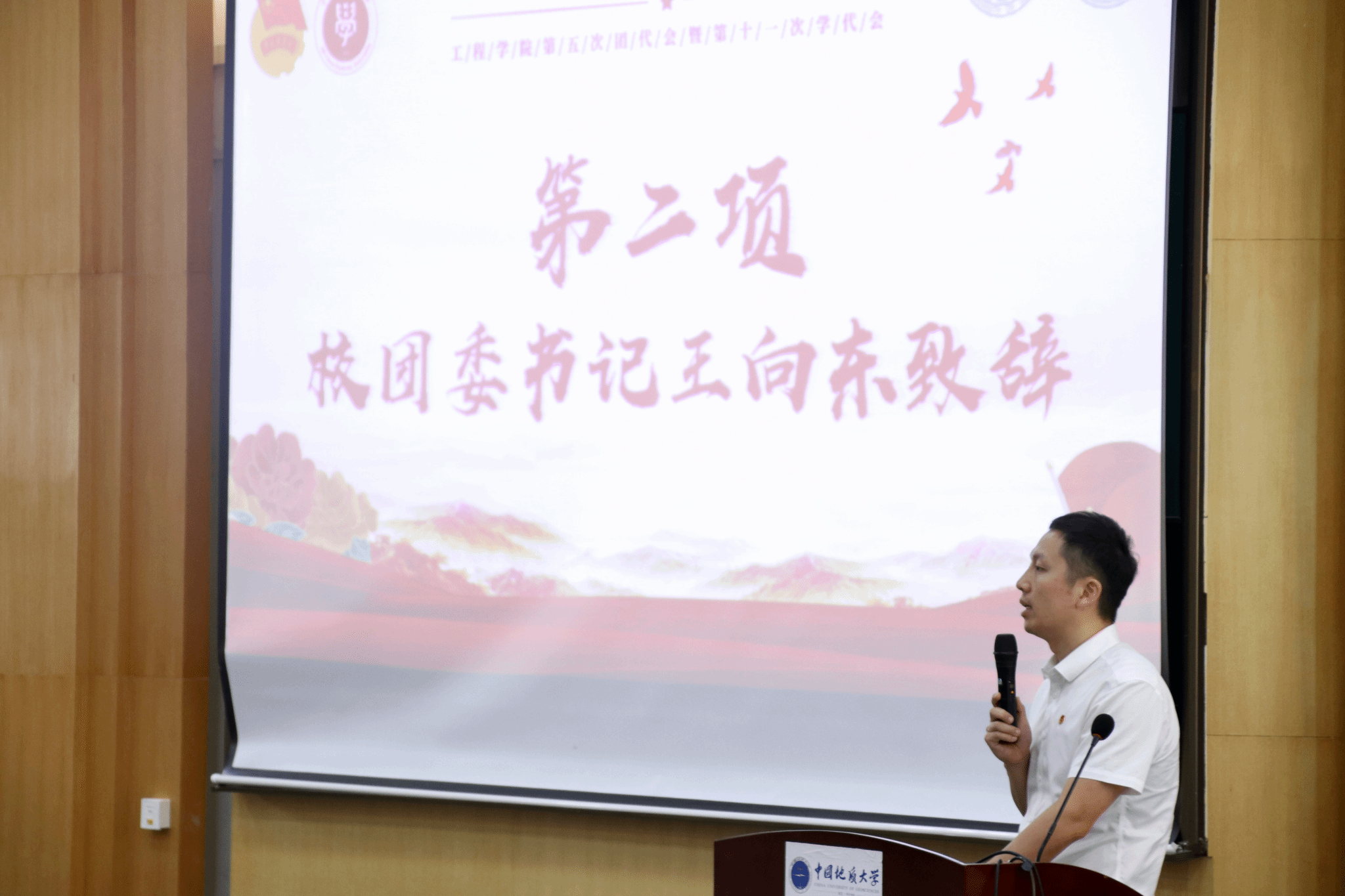 开幕仪式上,校团委书记王向东致辞。他肯定了近年公司在青年思想政治引领、创新创业实践、青年志愿服务、宣传思想文化、基层组织建设等方面取得的成绩。他强调,本次大会是best365英国体育在线全体团员青年在校政治生活中的一件大事,更是best365英国体育在线共青团围绕公司党委中心任务,团结带领广大青年听党话、跟党走的生动体现。他鼓励青年员工把爱国之情、报国之志融入祖国改革发展的伟大事业之中、融入人民创造历史的伟大奋斗之中,以挺膺之姿筑强国之梦,为建成地球科学领域世界一流大学矢志不移贡献青春力量。