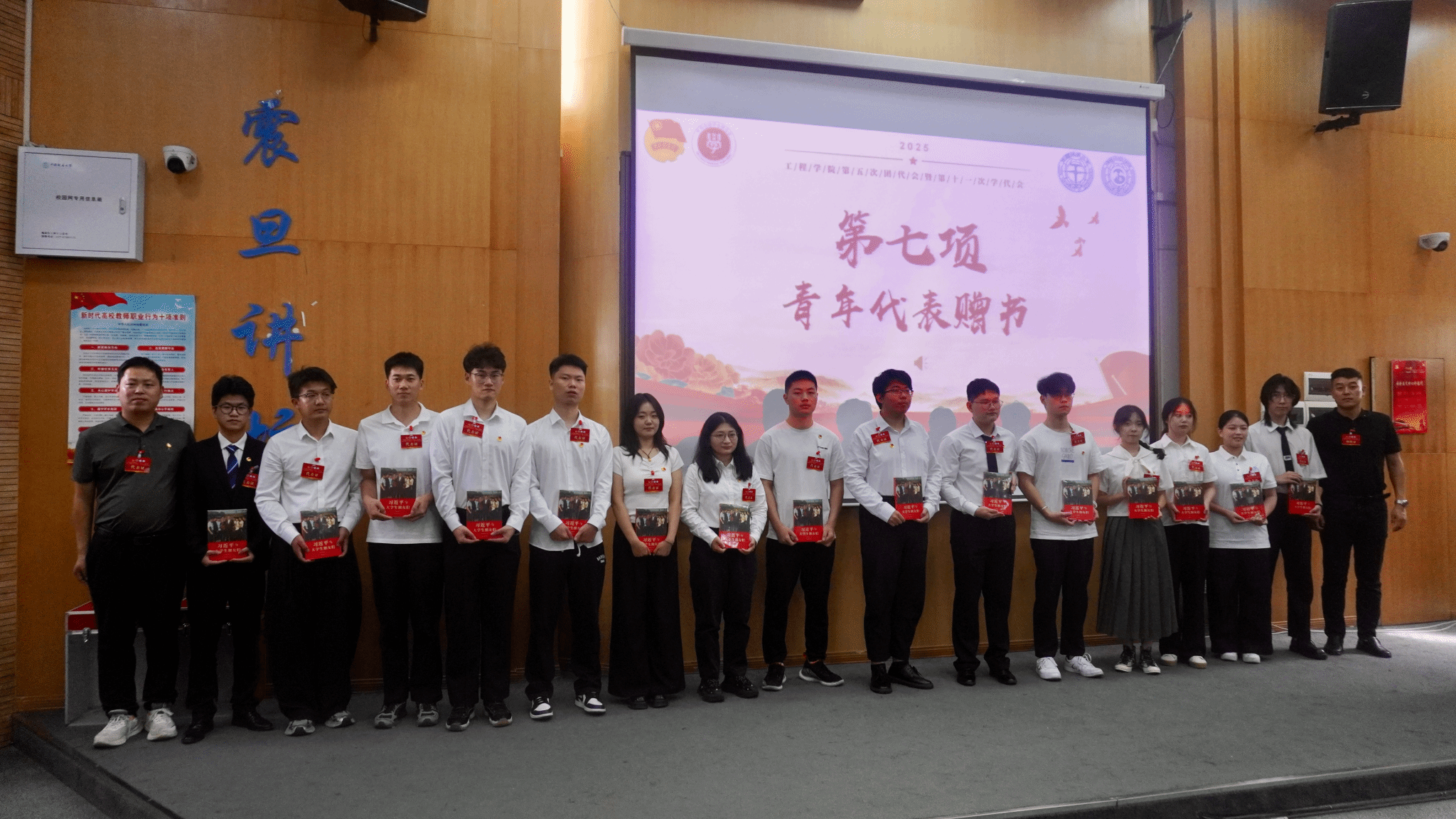 公司党委副书记高晓东和挂职团委副书记刘浩为今年在“五月的鲜花”2025年五四评优活动获奖的优秀青年和集体、best365英国体育在线“十大标兵员工”赠书。