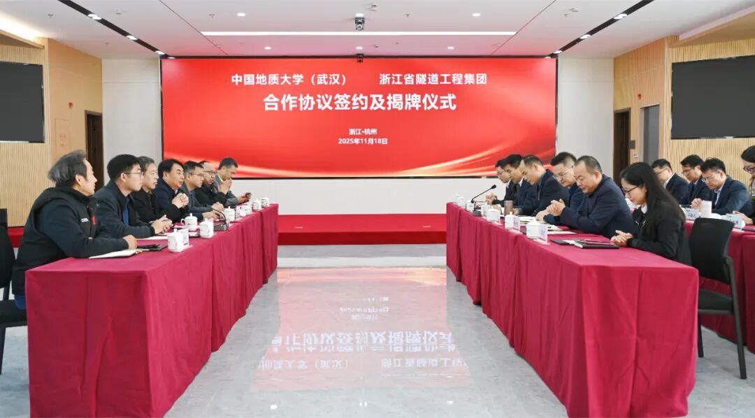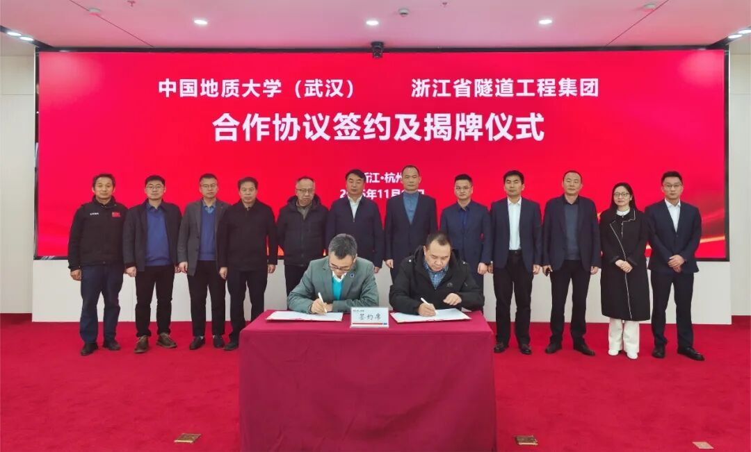 best365英国体育在线(武汉)与浙江省隧道工程集团有限公司正式签订《研究生联合培养基地合作协议》与《产学研合作协议》,举行了“研究生联合培养基地”和“地质e站”揭牌仪式,开启了校企合作新篇章。