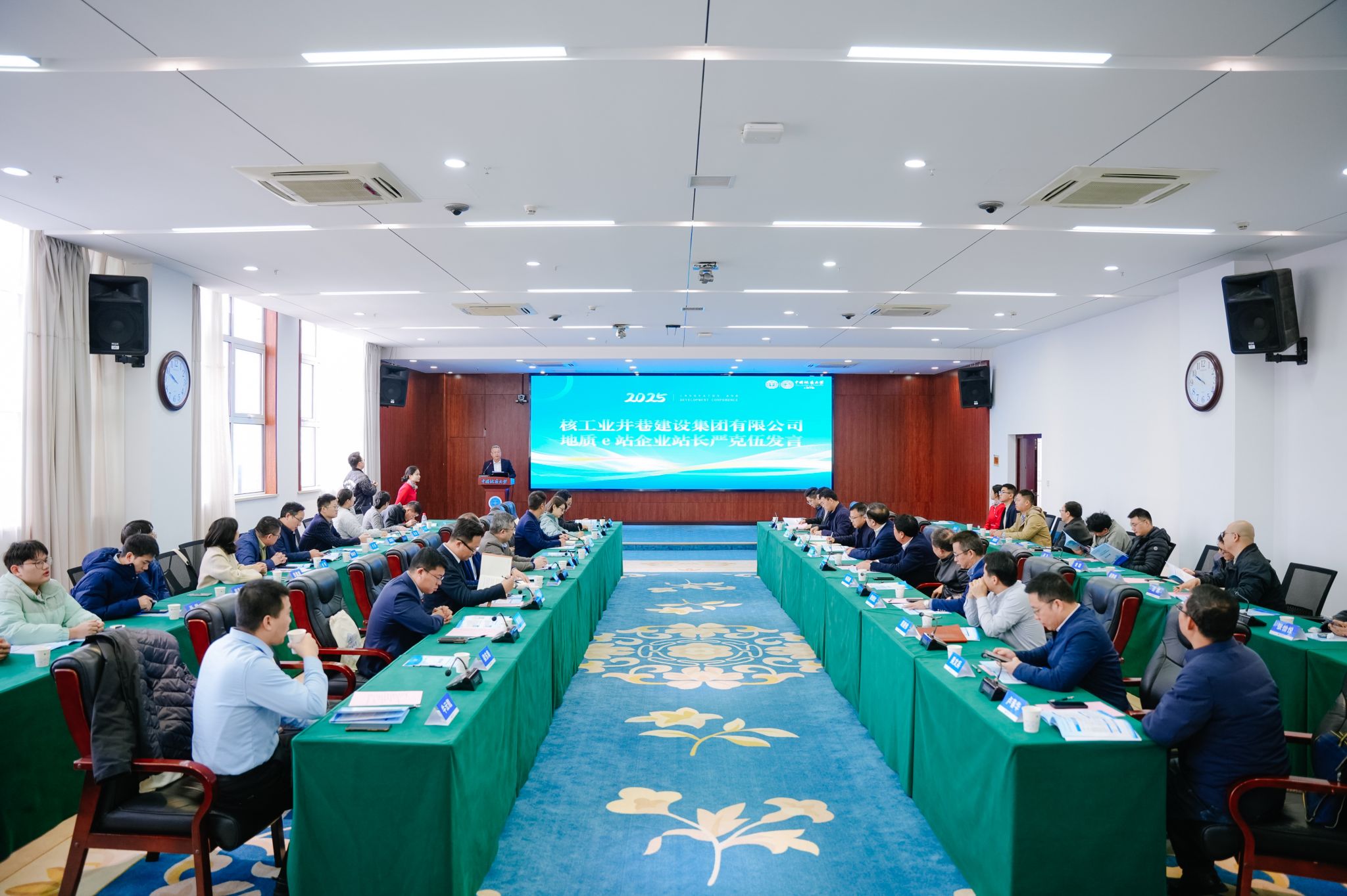 核工业井巷建设集团有限公司总工程师严克伍,勘查基础与工程系教授卢春华分别代表“地质e站”企业站站长、校内站站长发言汇报建设思路与预期成效。公司与安百拓集团、中建八局西北公司等12家单位达成共建意向。校企双方围绕“地质e站”建设和科研攻关、人才培养融合发展主题进行了深入研讨交流。