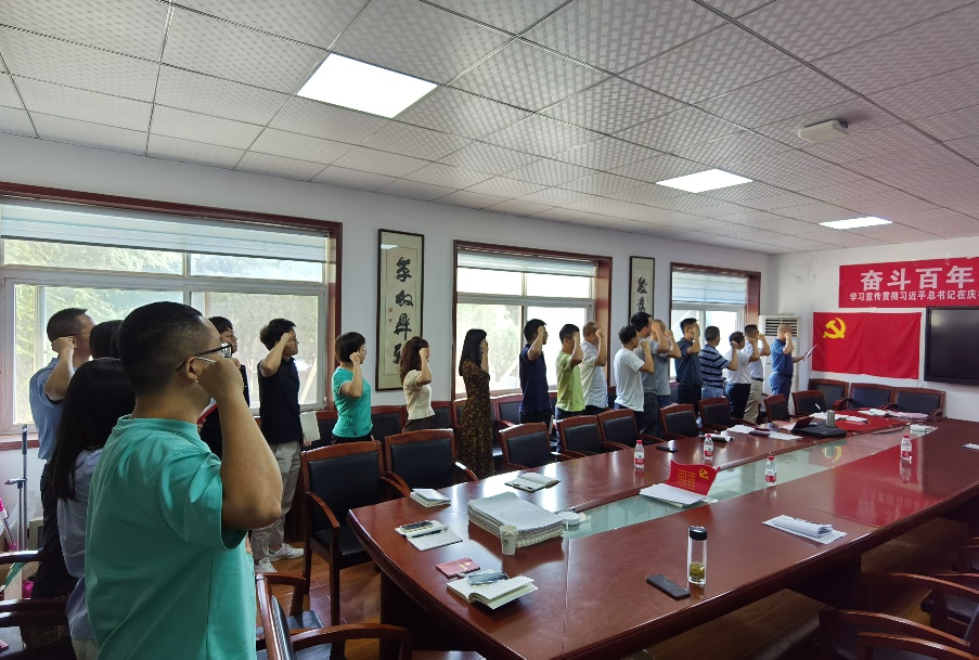 贾洪彪书记为过“政治生日”的邓清禄和葛云峰2位同志发放了纪念卡。葛云峰同志带领大家一起重温了入党誓词,并带领大家学习了《中国共产党章程》第五章“党的基层组织”。冯晓腊、简文星等同志就本次活动的文件精神、党支部建设、系室建设等事宜进行了热烈的讨论。
